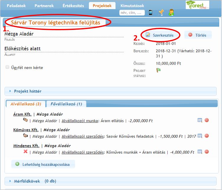 Keressük meg a projektünket. Kattintsunk a Szerkeszt gombra!